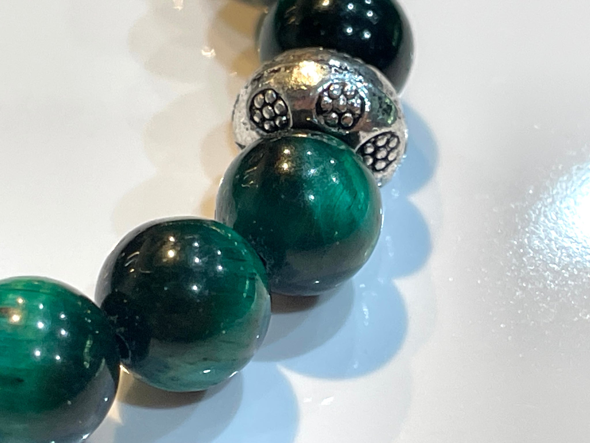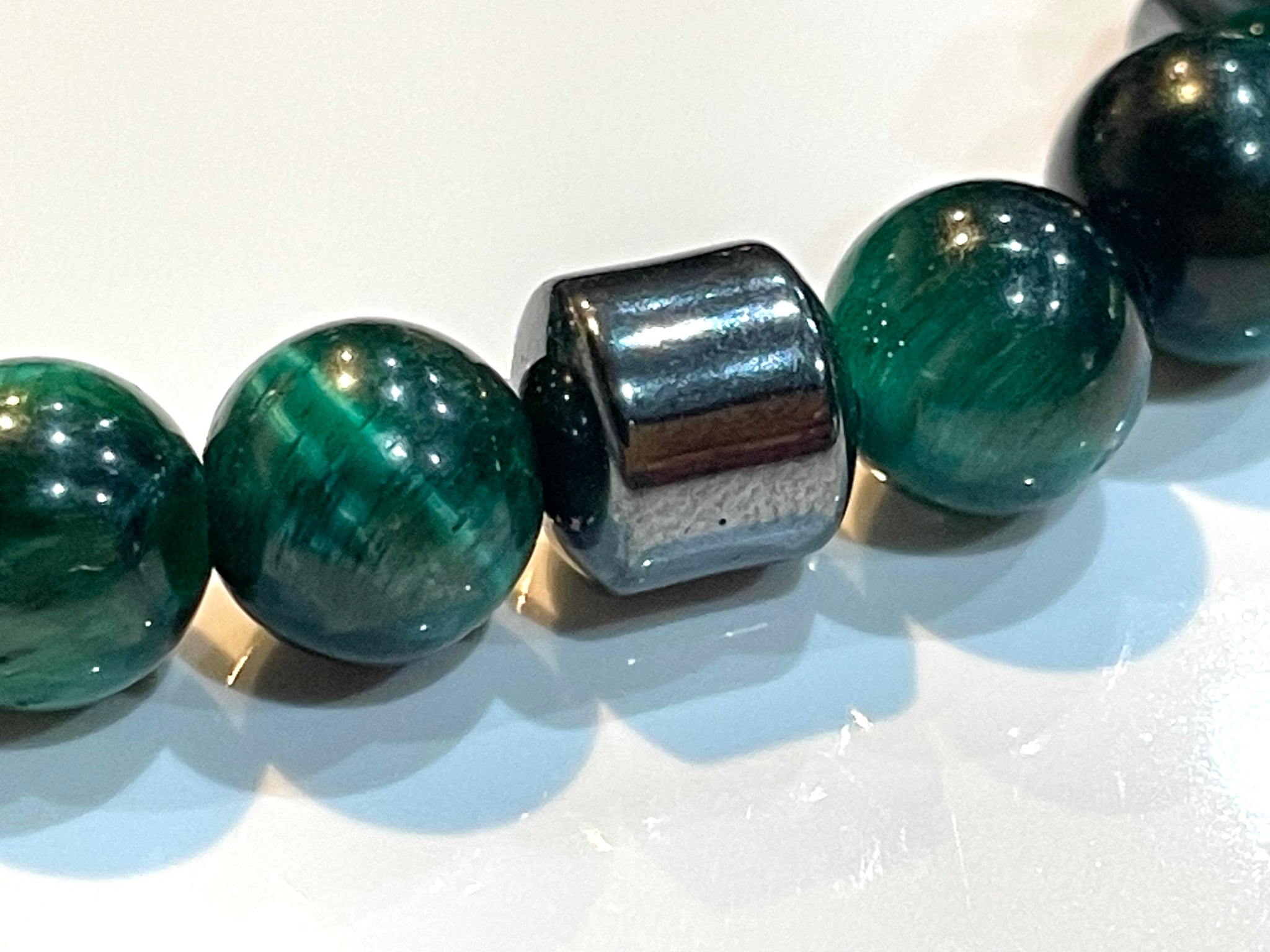 We added a few beads of strong magnetized hematite to really amp up the power of protection. Hematite has very strong grounding energy that you can feel, just by holding the stone in your hand. It also has a cooling and calming effect that is grounding and protective.