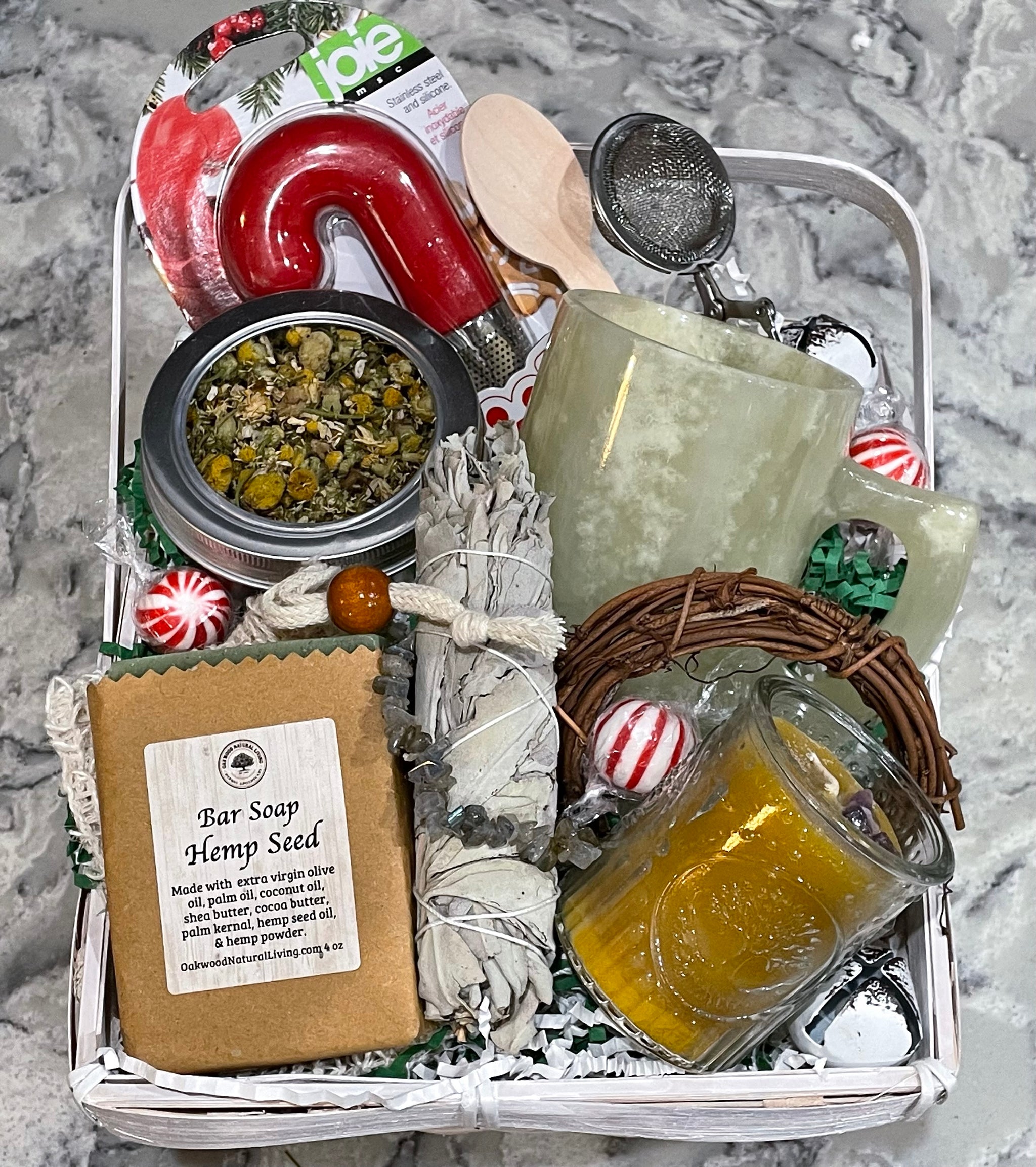 We have other gift baskets and collections that can be found throughout the website with raw honey, beeswax candles, wax melts and meditation kits.