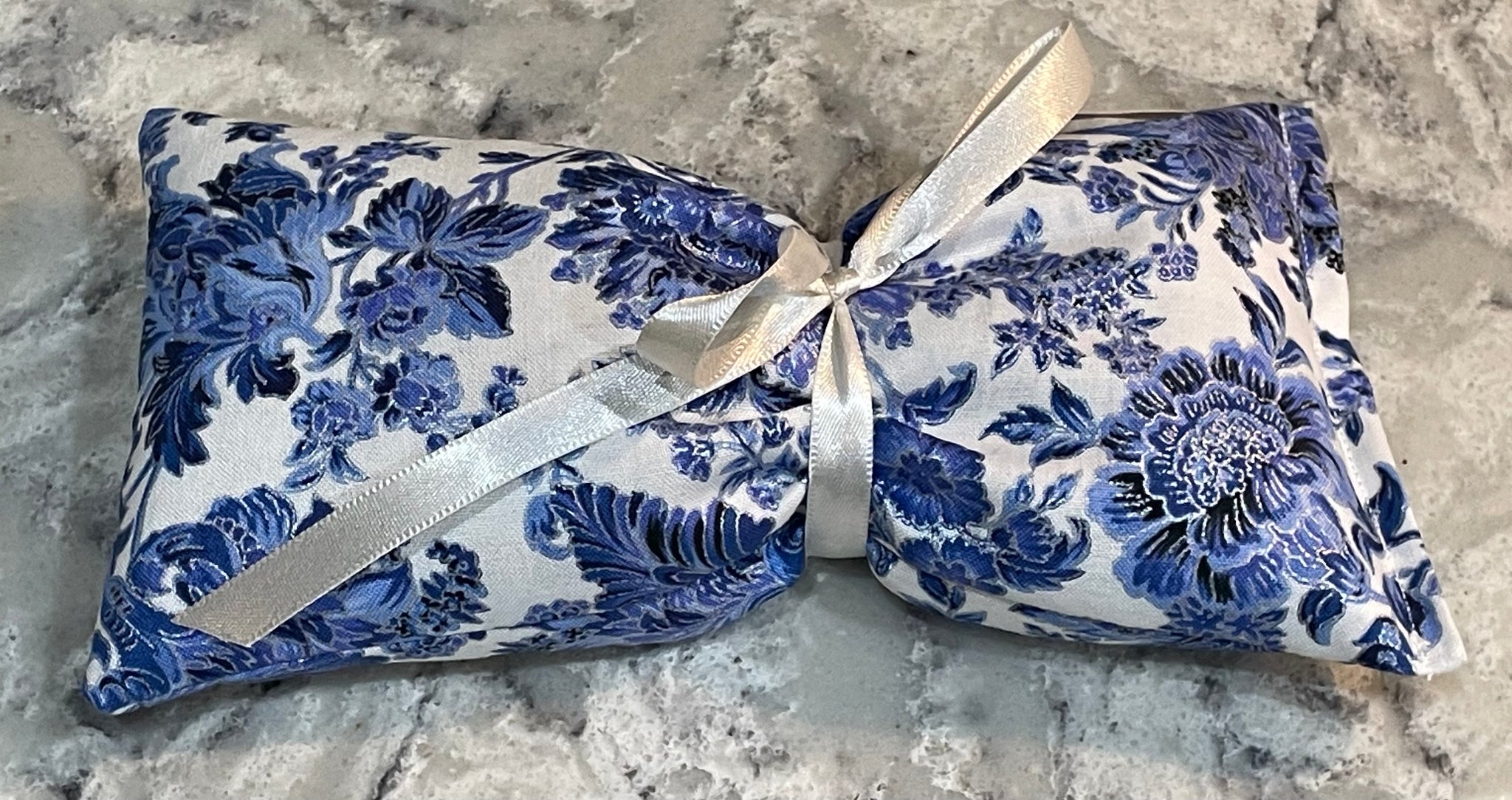 The Lavender Pillows are individually hand sewn with a variety of natural cotton fibers and then stuffed "just right" with organic rice and organic air dried lavender buds.