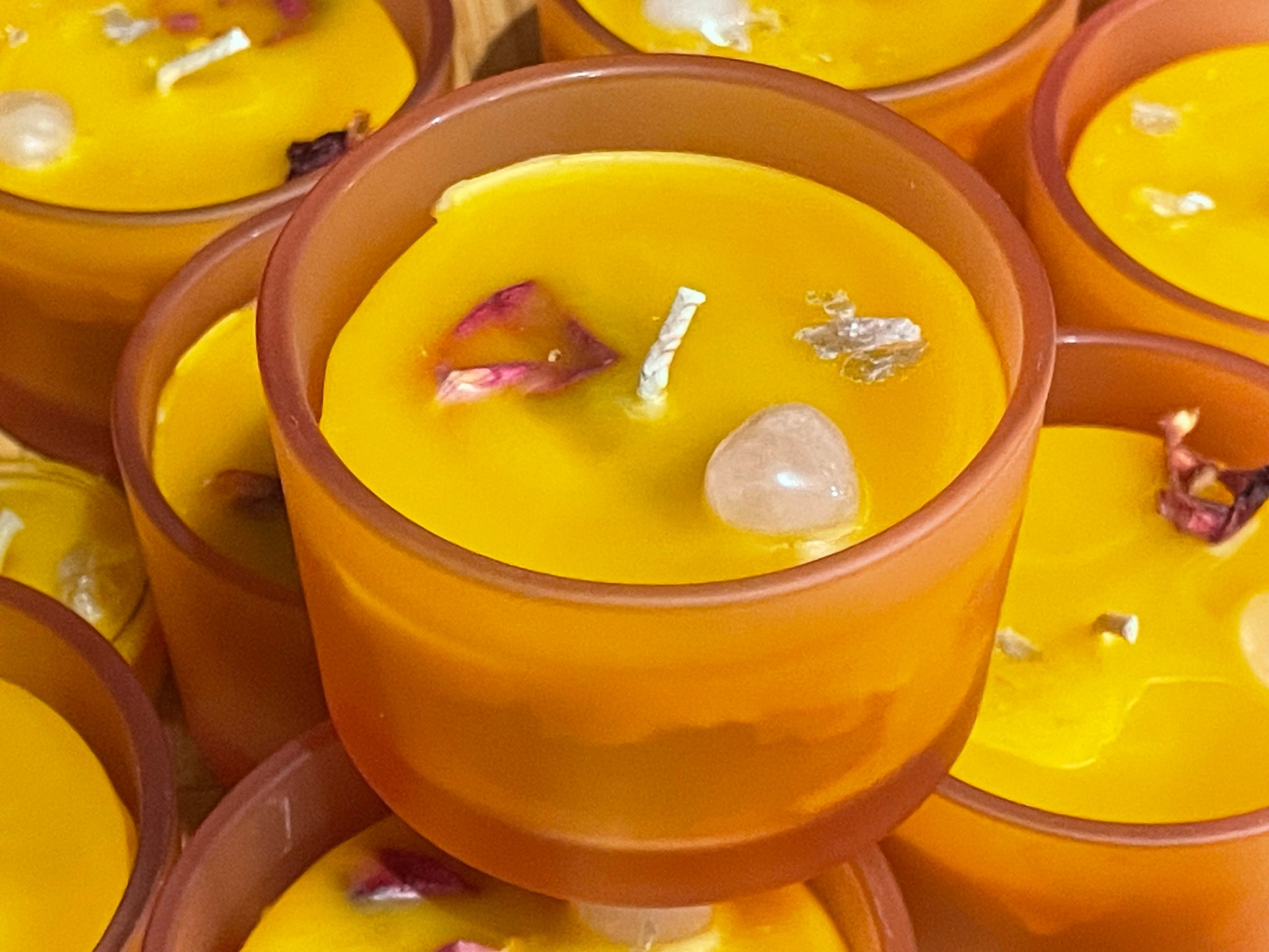 We also offer beeswax wax melts,  natural fire starters and selinite crystal tea light holders.