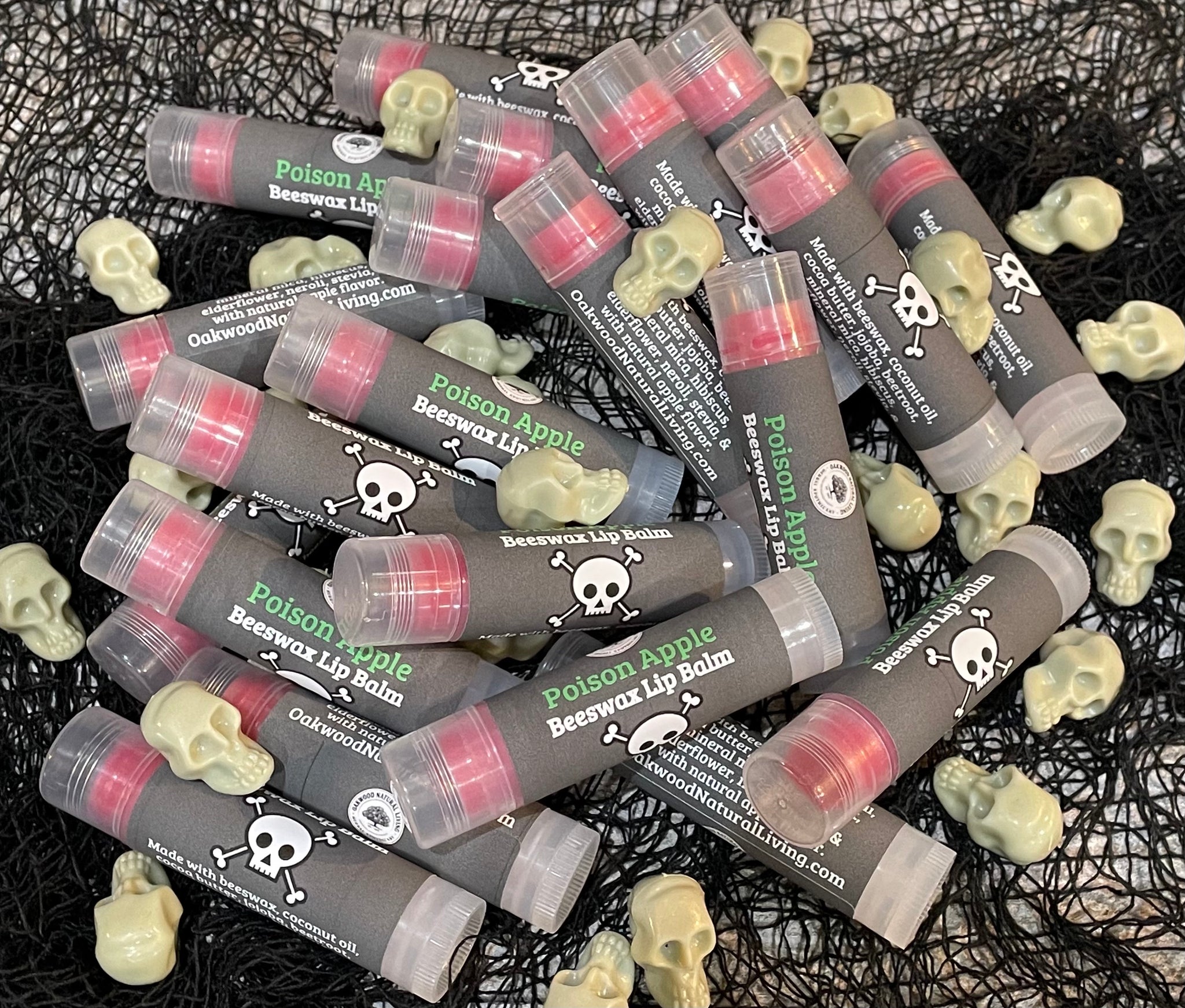 Our Poison Apple Lip Balm is not poisonous but it may put you under a spell with its sweet tart natural scent and subtle taste of tart apple.
