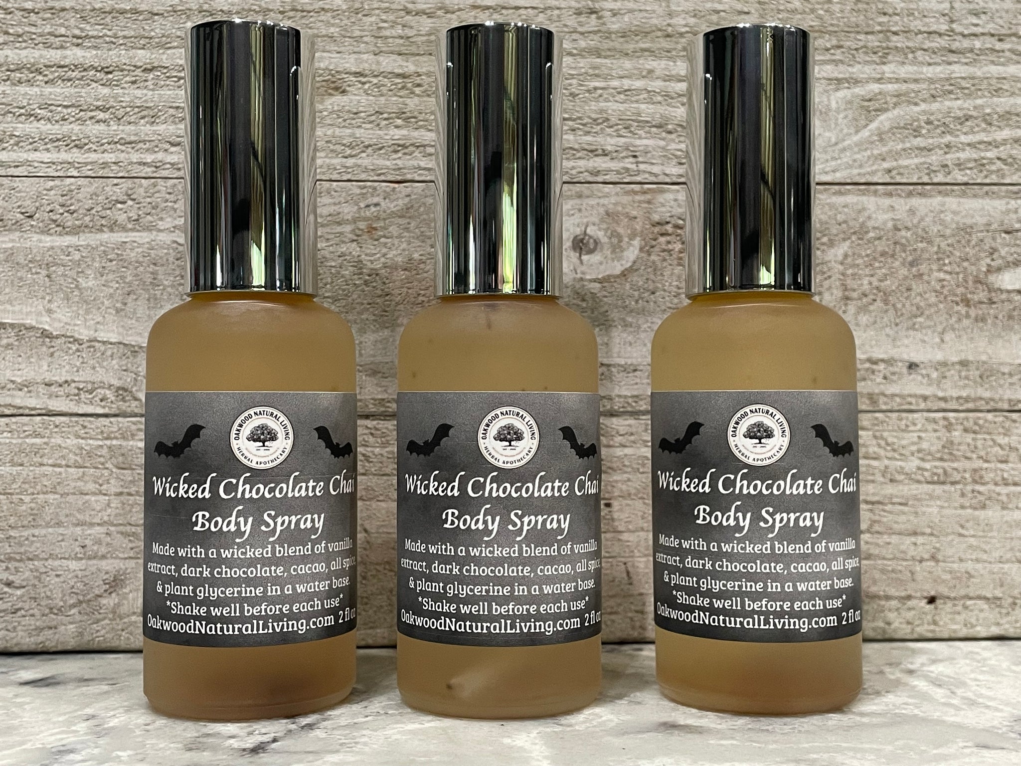 Wicked Chocolate Chai Body Spray is a custom blend with the mindset of decadent chocolate and fall spices that offers a rich delicious dessert like scent to be misted on the skin.