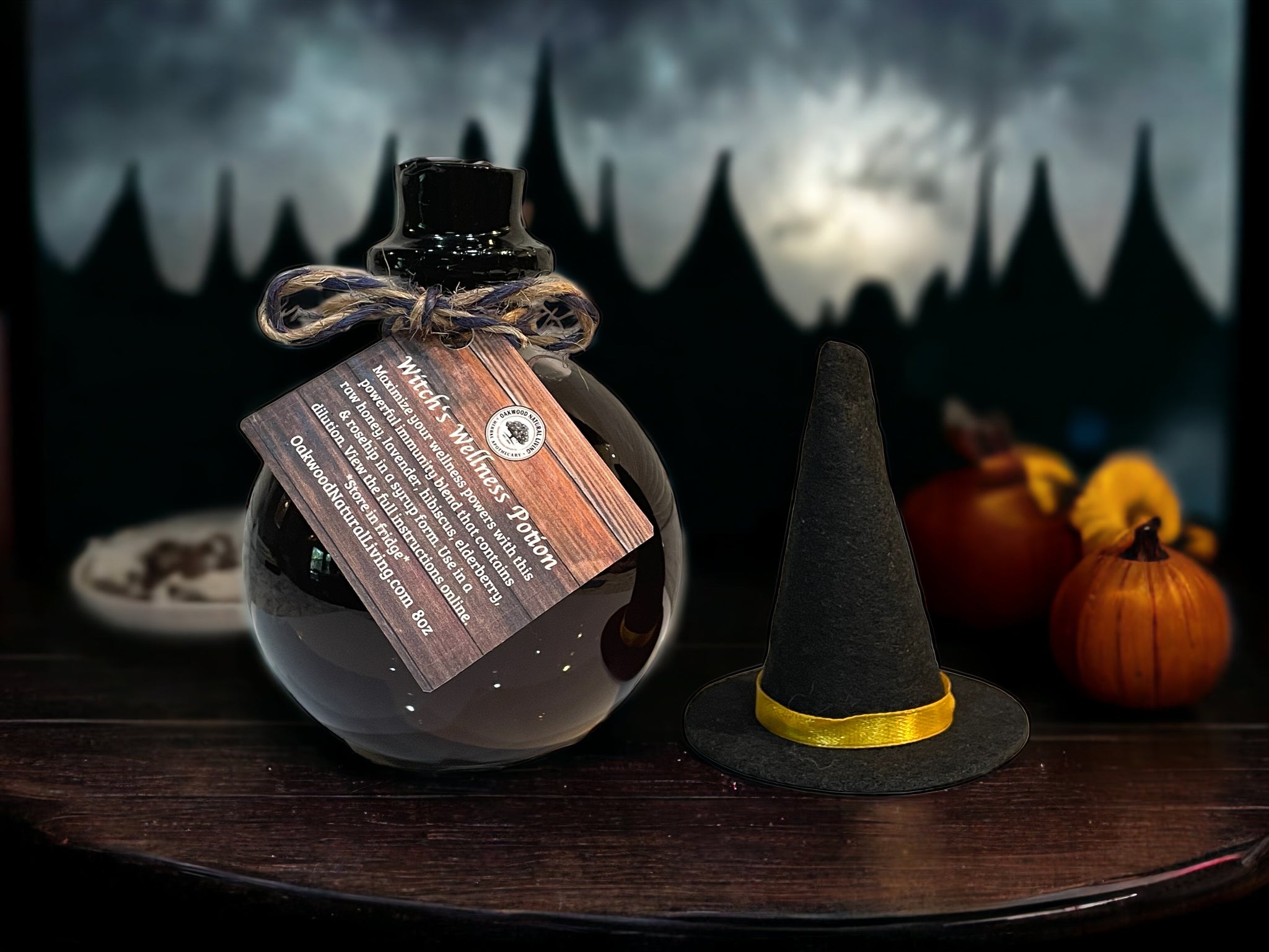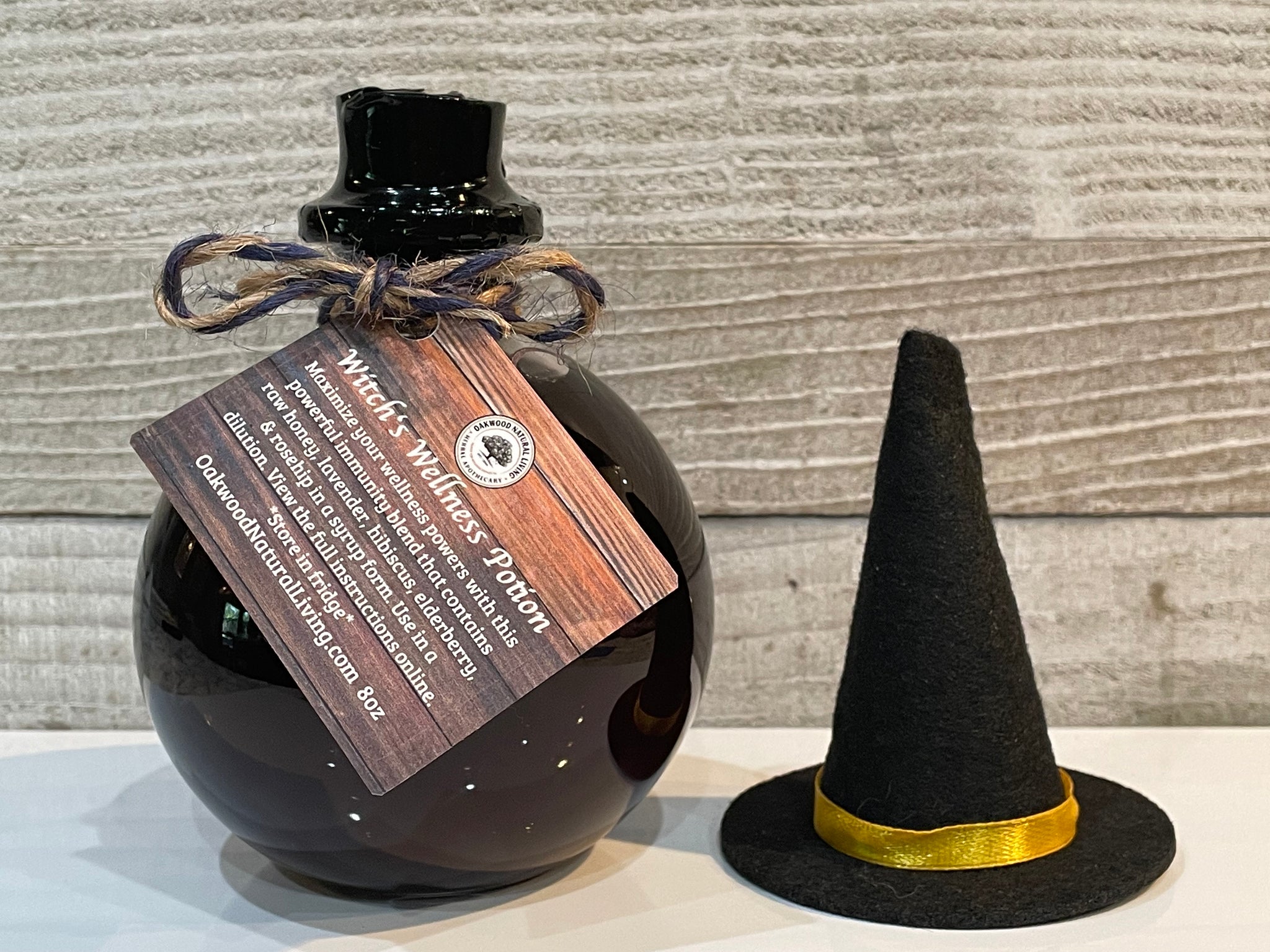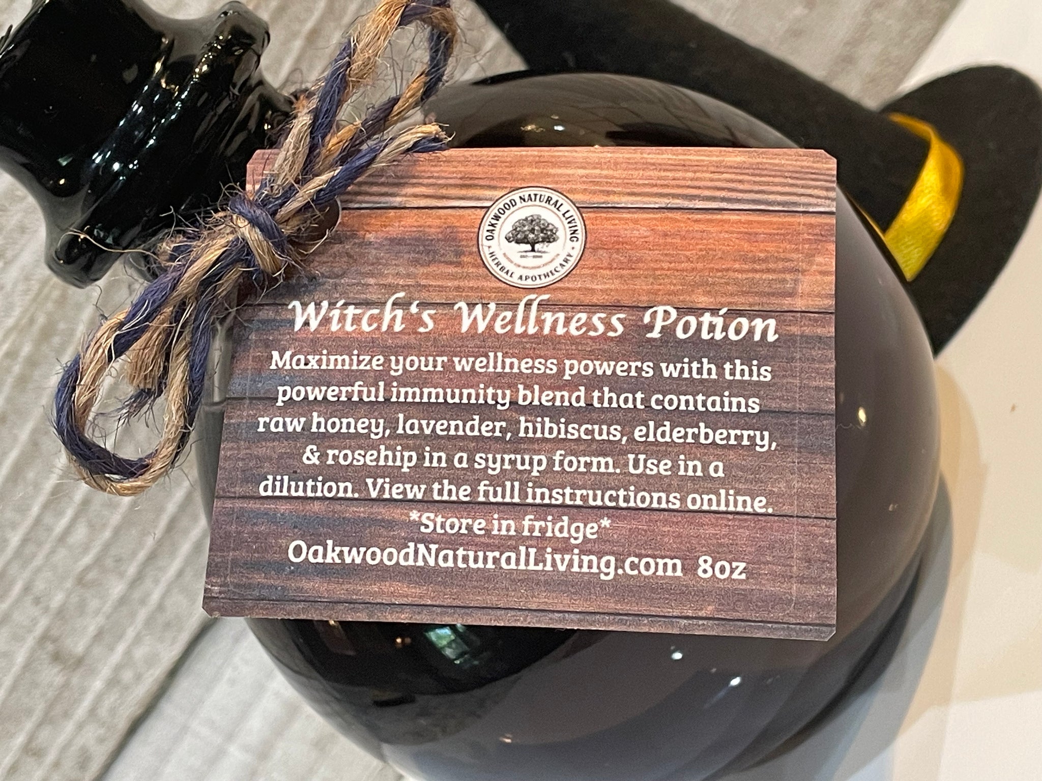 Our Witch's Wellness Potion is a fresh made syrup that is perfectly blended with lavender, hibiscus, elderberry, rosehip and fresh harvested raw honey.  This blend offers the same herbs as our Immunity Herbal Tea with the herb proportions blended a little differently but with the same benefits.