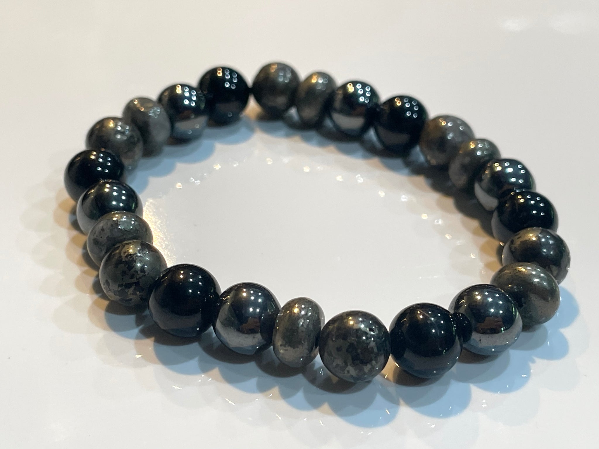 This custom bracelet is made with natural pyrite, hematite, magnetite & black tourmaline.