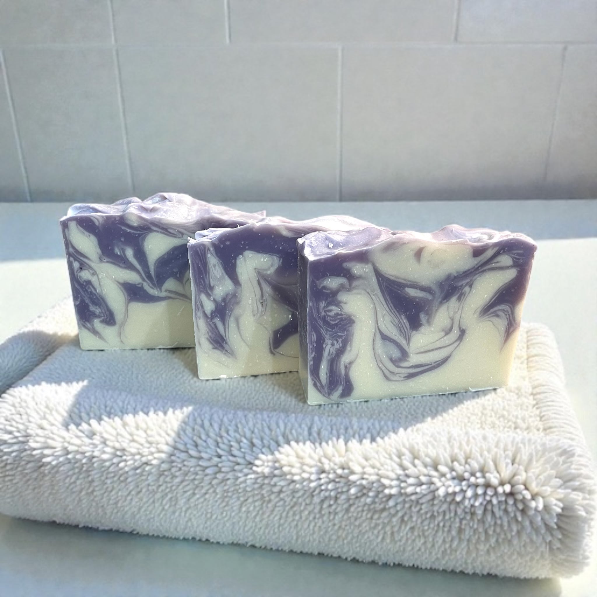 Our limited batch of lavender mint swirl bar soap is being featured for Valentines Day and with its beautiful swirls of lavender and minty white, it will be sure to give you a wonderful experience when using it to cleanse.